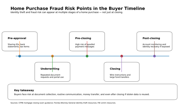 These risks matter because homebuyers often share bank statements, tax forms, government ID, payroll records, and payment instructions during a short, high-pressure timeline.